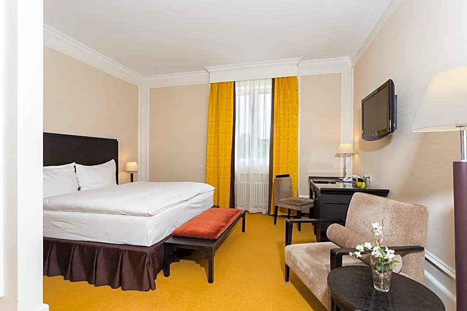 This bright and spacious junior suite provides a lounge area, a work desk and a large bathtub.